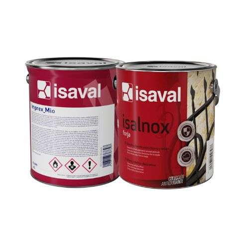 Sistema anticorrosivo formado por el Imprex MIO, base anticorrosiva de dos componentes con pigmento de óxido de hierro micáceo. Isalnox forja, esmalte sintético anticorrosivo de acabado forja y apariencia metálica.